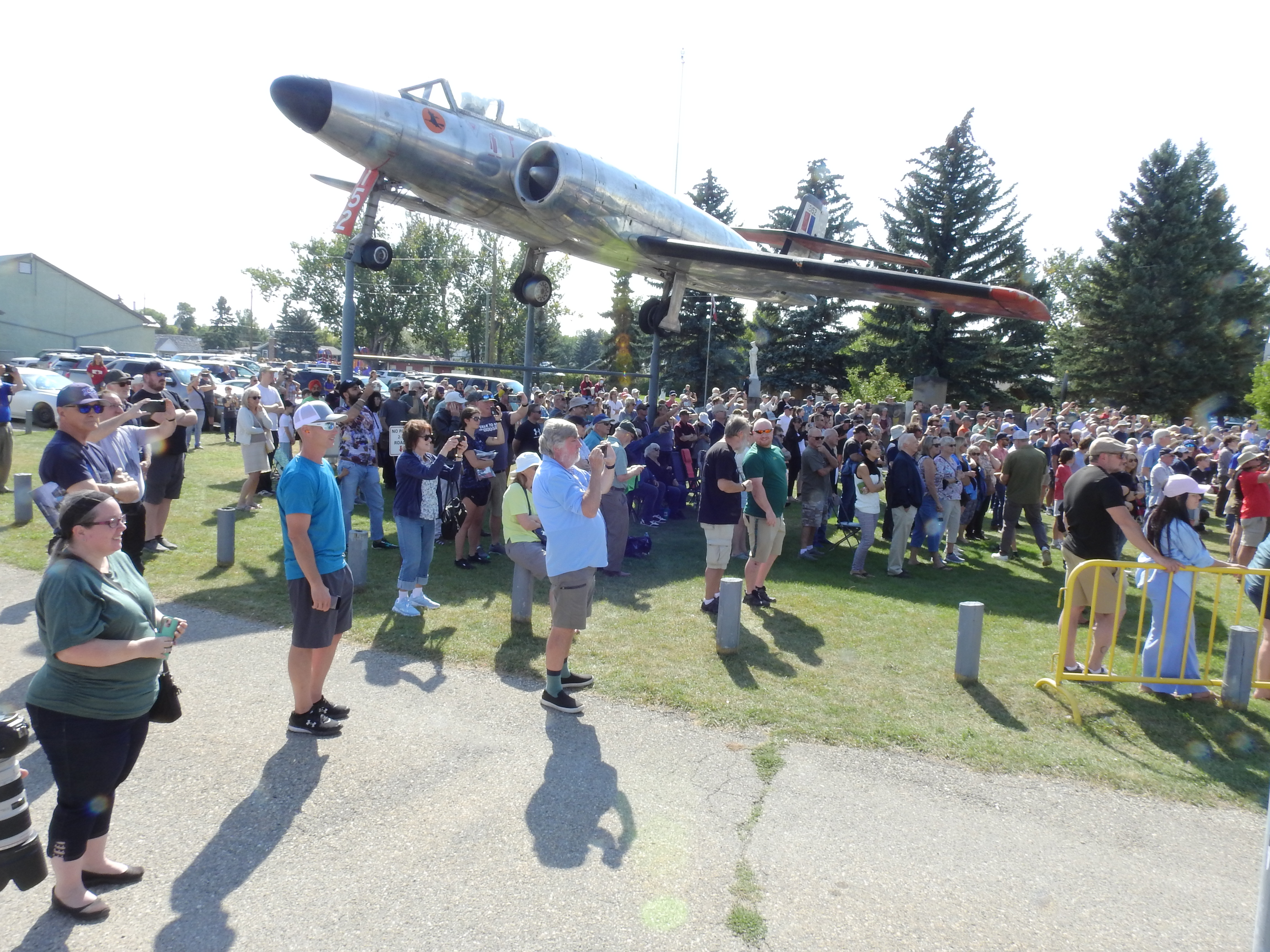 We were also pleased, on this day, to accept a donation from Wes Kraus, President of the Medicine Hat chapter of the Canadian Aviation Historical Society. Our thanks to them. We were also supported by the participation of a number of volunteers who specifically come out to help with book and merch sales: Penny S. as well as Bert and Bev F. All in all, an excellent opportunity to 'Honour and Educate'.