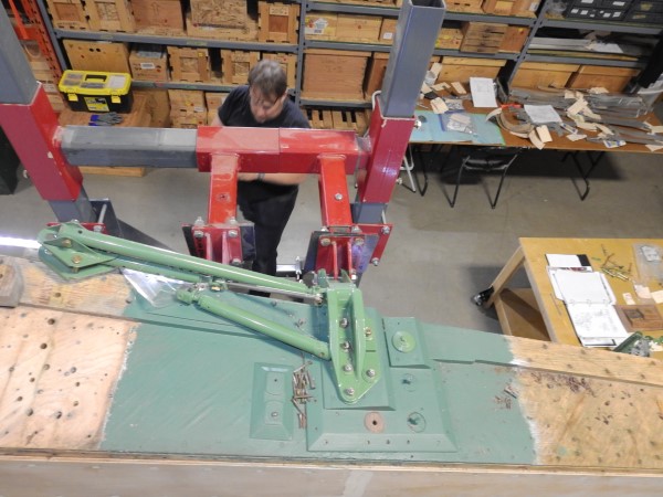 As Gary completes the last top skin replacement, we can shift our focus to the leading and trailing edges of the wing. In order to do this, we will look at flipping the wing 90 degrees, from the vertical to its horizontal orientation over the winter.