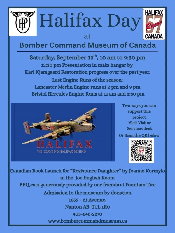 Next on the event day calendar was Heritage and Nanton Parade Day on August 4. This was followed up with the annual 'Bikes and Bombers' on August 23, with the season wrapping up on September 13 with an afternoon talk, an evening book launch and a Lancaster night run as part of Halifax Day. As always Mosquito Society members split their time and energy into selling merch, talking to guests and visitors, and continuing restoration work; all of which makes for an exciting, fulfilling and exhausting day.