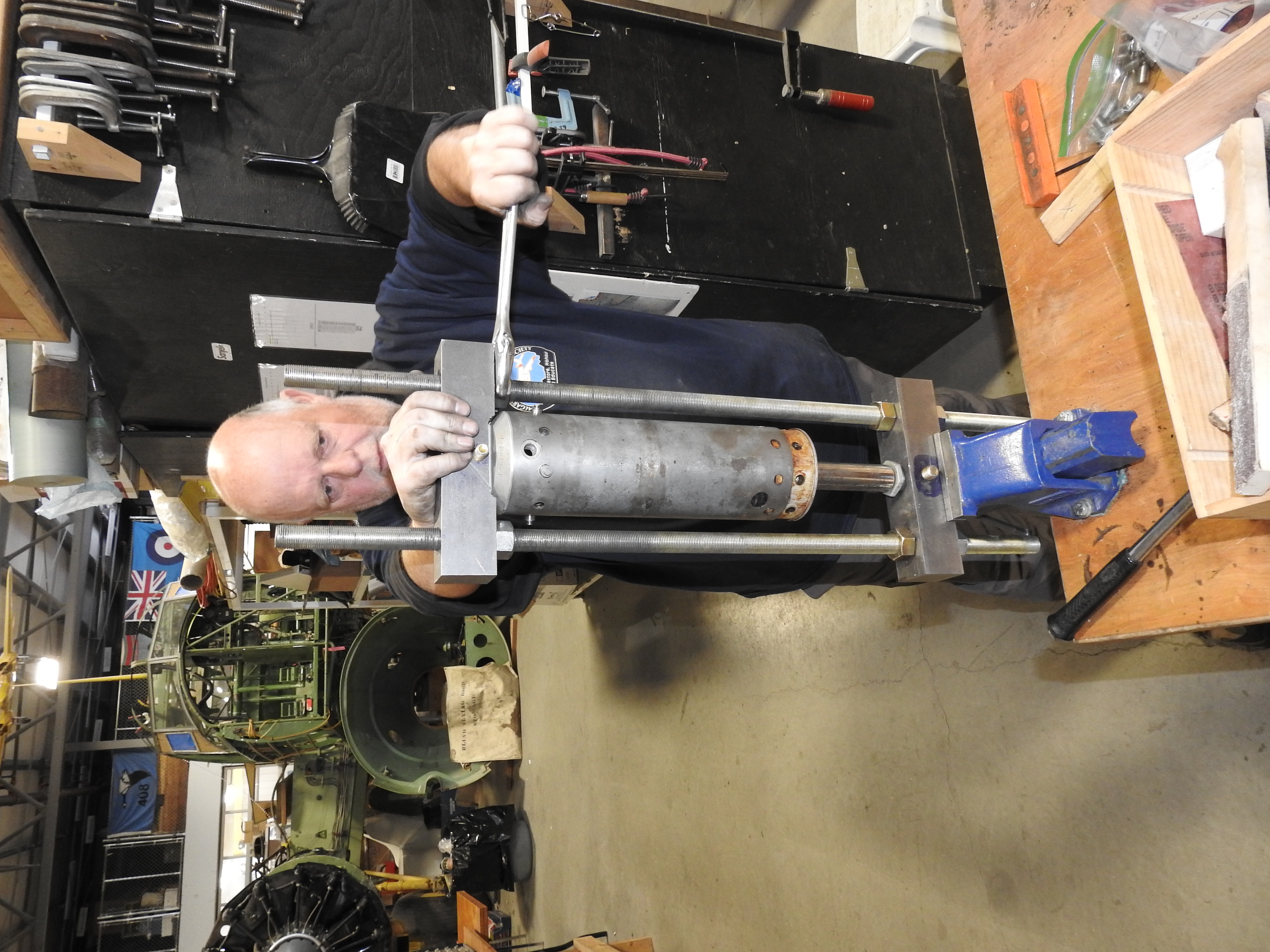 Gary T. is also busy working on several projects at home, to be used back on the aircraft in weeks to come. Notably, he has utilized his machining skills and tools to design and manufacture pin pullers to disassemble the flap actuators, all of which requires considerable brain power, the equipment to accomplish the job and the will, skill and time to do so.