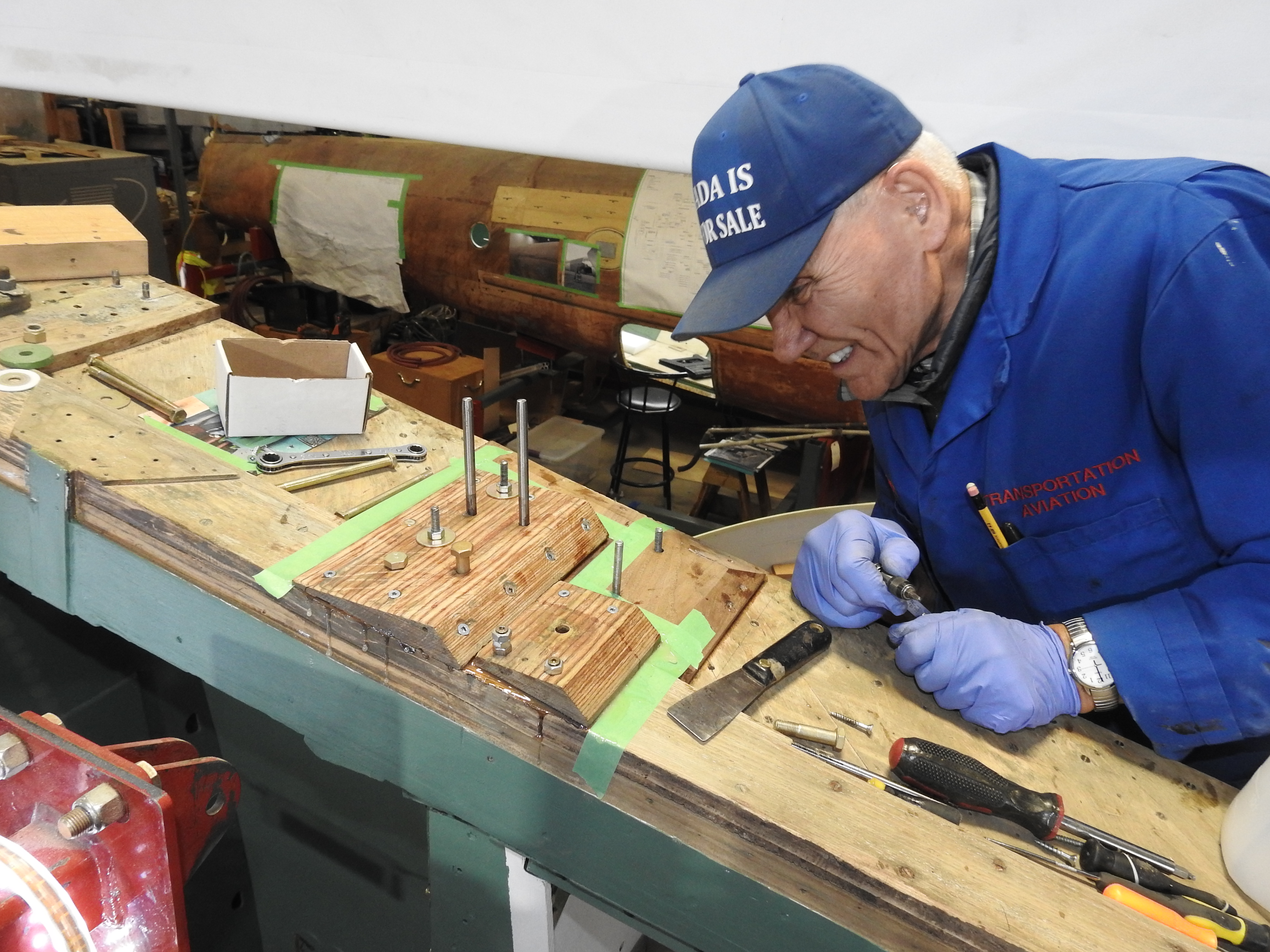 I want to touch base on some details that most people won't see, and some may not appreciate in terms of what goes into some component work and restoration on this job. We have all watched Gary T. painstakingly develop a process to remove then install new skins on the wing. At the same time, Dick S. has been working on various small tasks that may look minor or insignificant, like removing dents from conduit, but as he does some of this work in his shop at home, no one sees the jigs and bullets he has designed in order to accomplish these tasks. His skill and patience are beyond measure.