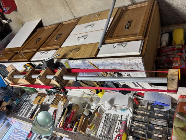 In addition to running parts for welding, powder coating and bead blasting, our rear fuselage boss, Don H. is busy on Tuesdays and Saturdays hooking up flight controls, namely the trim cables. It is not an easy task the first-time round, so a certain amount of smoke is occasionally detected coming from that corner of the shop.
