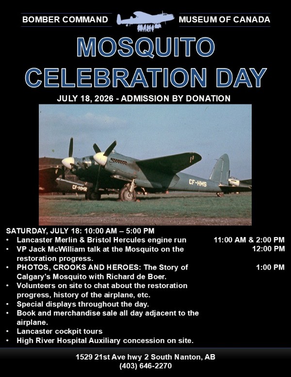 Our hosts at the Bomber Command Museum have chosen Saturday, July 18 as the date for Mosquito Celebration Day this year. Mark thy calendars accordingly. Thanks to Ashley at Bomber Command for the lovely poster:
