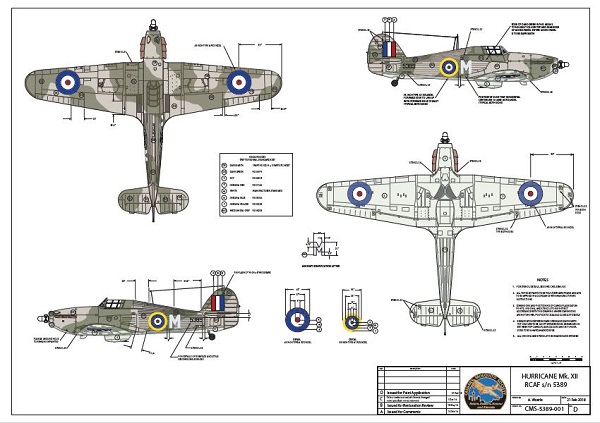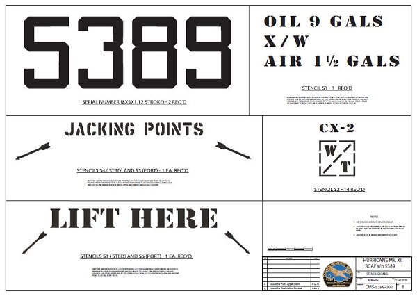Here is the paint scheme and the character shapes and sizing for Hurricane 5389. Colours shown are not representative of the actual 'Dark Earth, Dark Green and Underside Sky'.