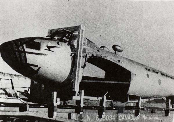 Volunteers from de Havilland Canada disassembled and prepared CF-HMS for its trip from Ottawa to Calgary on the back of a Canadian National train.