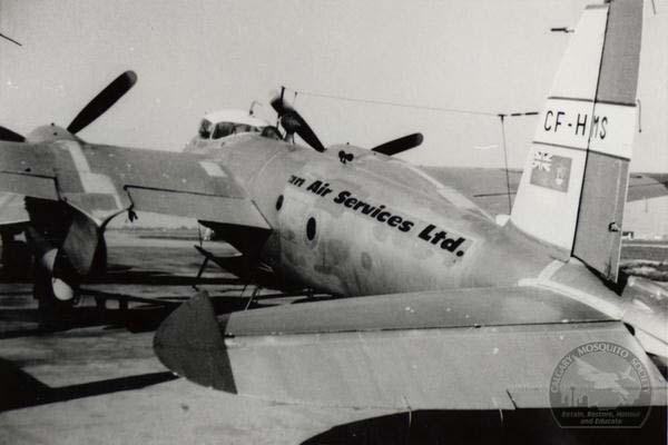 Upon arriving in Calgary, CF-HMS was placed into open storage inside a petrolium pipe storage yard belonging to Shell Canada. Use of this facility had been arranged with the famous RAF