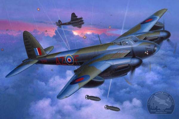 survived," Bob admitted. But the squadron lost one Mosquito that night. "They made it back to the sea with one engine gone but it (flak) must have got his gas tank 'cause his other engine
