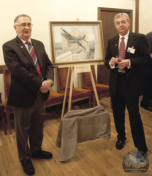 Hand-in-hand with the passionate telling of the F-for-Freddie story by Richard de Boer (right), CMS member and aviation artist Allan Botting (left) unveiled his latest artwork - Freddie