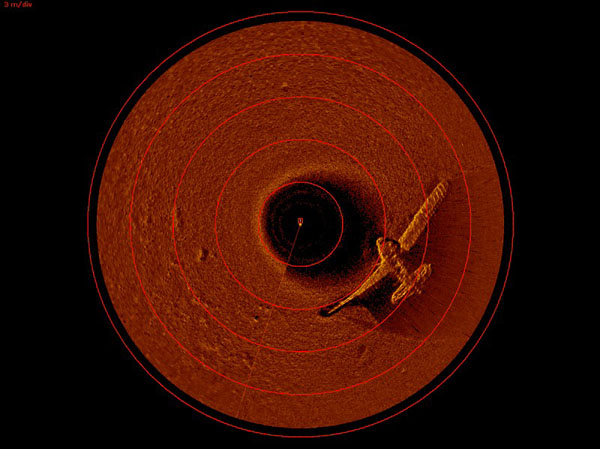 coming upon the right one. The lake was swept with a magnetometer and a reading was obtained. The team returned in February 2004 with a side scan sonar and the images showed the Hurricane