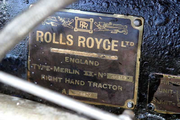 The Rolls-Royce Merlin XX recovered was No40519, AM No A218807, one of a batch of 348 built at Crewe to Order No 4700A and Contract B.67950/40. This engine was tested on 26 July and was
