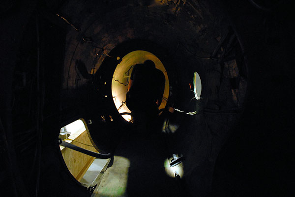 the escape hatch with 6,000 grit sandpaper. I was hoping we might find a layer of colours beneath the white that would give us a color time-line, but what we found were somebody's finger