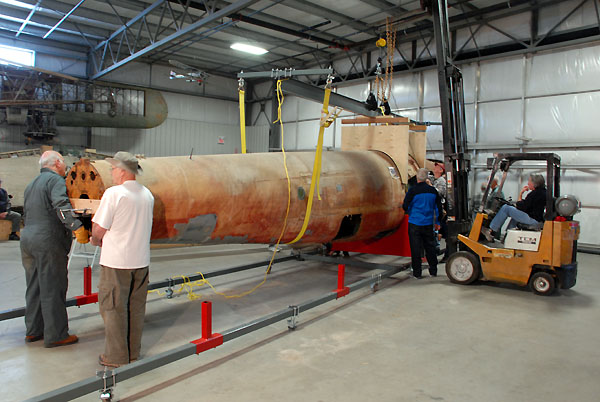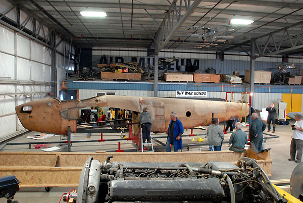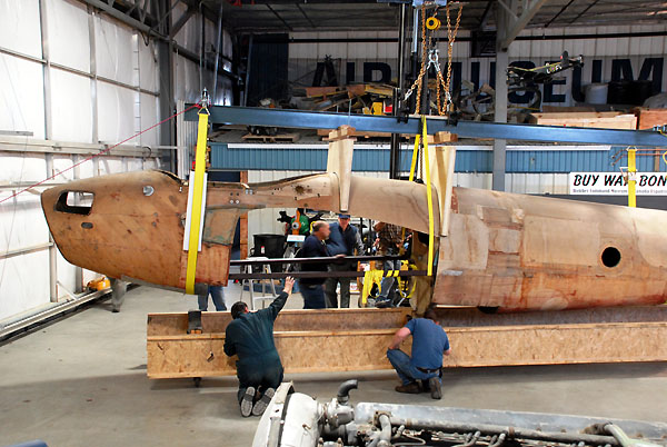 The Salisbury Hall crew at the de Havilland Aircraft Museum in England was instrumental in giving us a basic idea about how to lift the fuselage. Following the de Havilland crews' lead, the