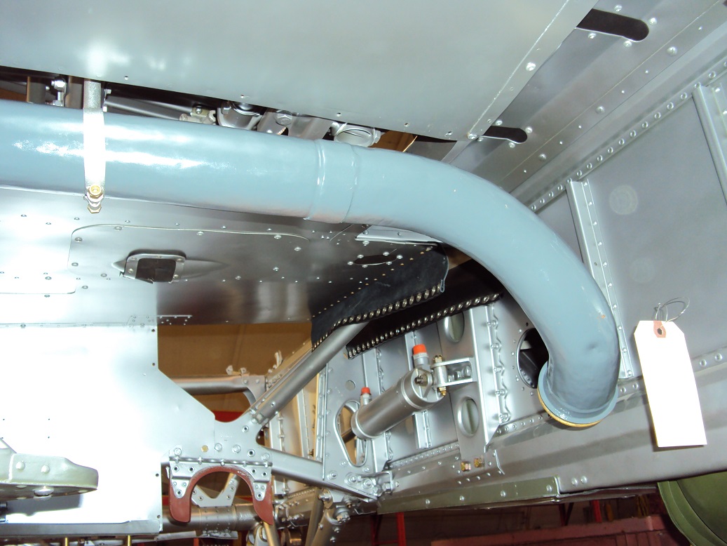 This is the lower, rear fuselage belly panel acquired from a vendor in England. Here it is being stripped and recovered before installation.