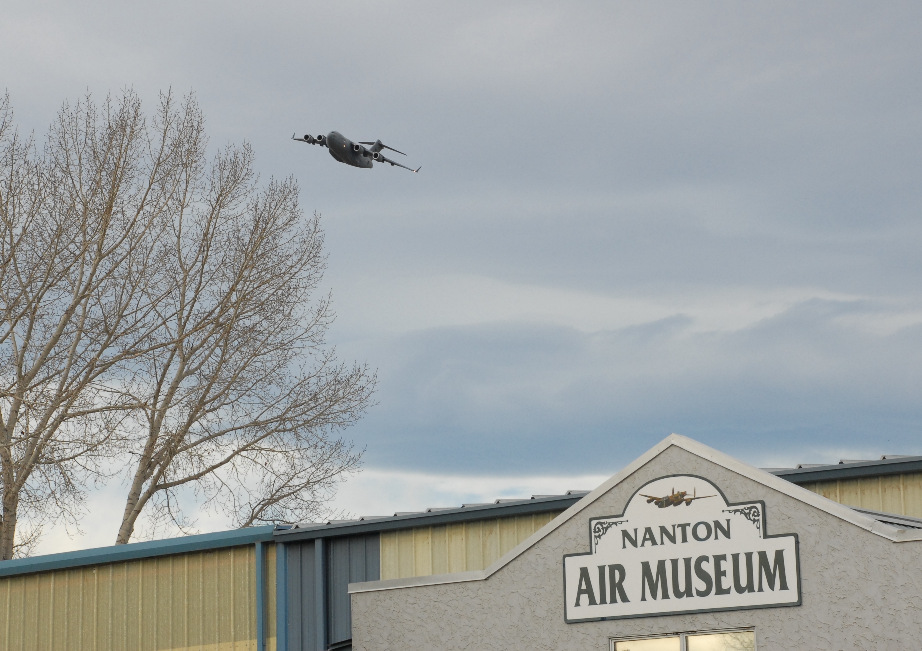 An RCAF C-17 heavy transport made several passes during the Remembrance Day ceremonies.