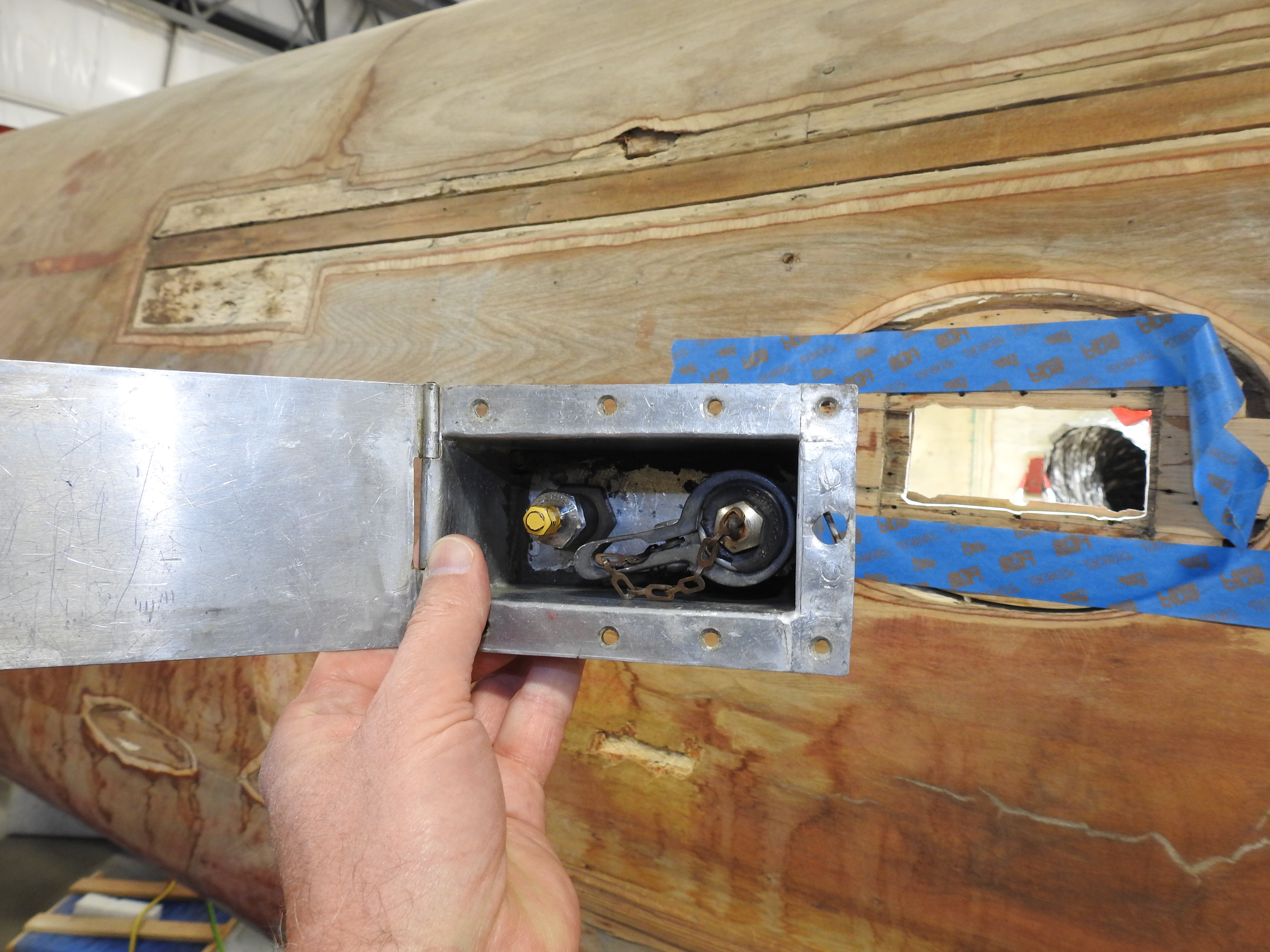 The Spartan designed and built oxygen fill port ready to be reinstalled into the starboard side rear fuselage. Both the box and the hole were crudely modified for the task.