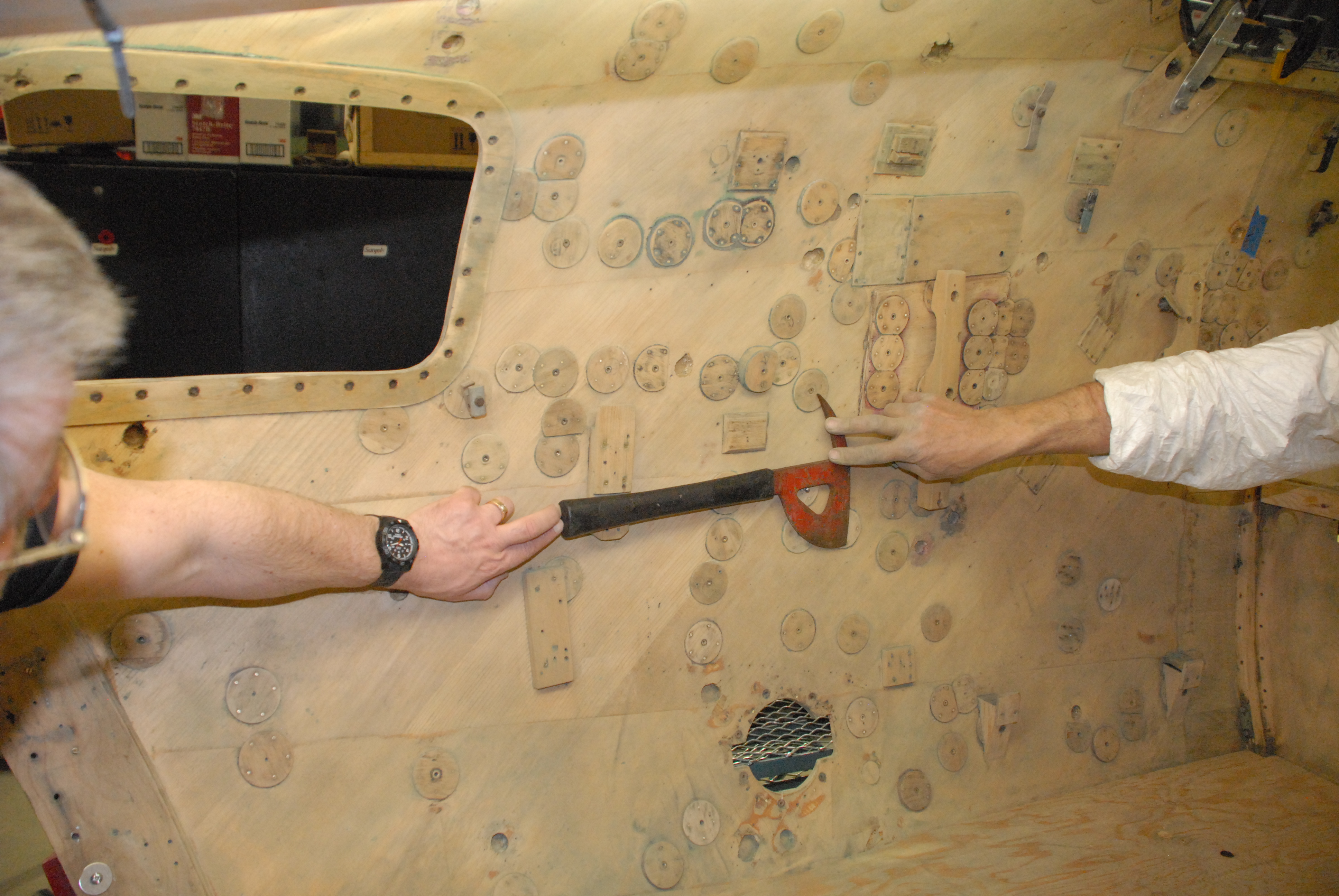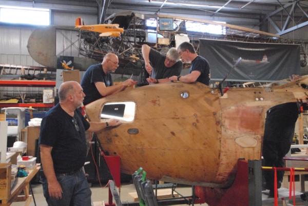 In an effort to address the missing parts issue, HASI requested, for the third time, that they be allowed access to all of the Mosquito parts and storage areas in Nanton to see if they could identify any additional Hurricane parts in our collection. Despite the tremendous amount of work in unpacking the 53' trailer in which store most of the Mosquito parts, we spent the better part of three days and one evening unloading crates, moving them to the Bomber Command Museum, opening and unpacking them and then moving them all back to the trailer. This was accomplished over the Canada Day weekend and although the engineers from HASI left with just two small arm loads of parts, they were excited by their finds stating that just one wooden part saved them a weeks' work. We hope that this is the last time we will have to go through this exercise.