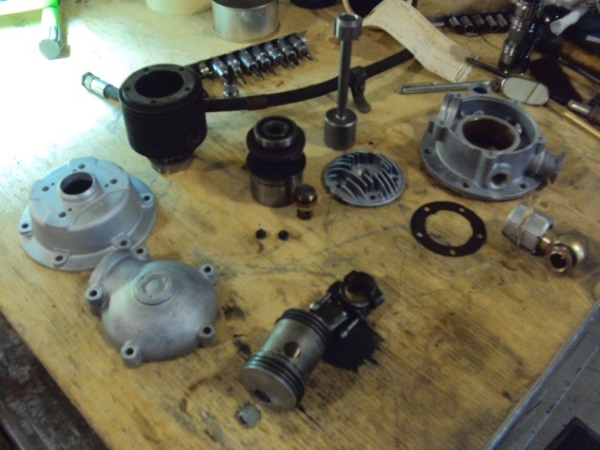 The newly acquired Heywood compressor, before and after: In many bits and pieces prior to overhaul and then complete and installed.