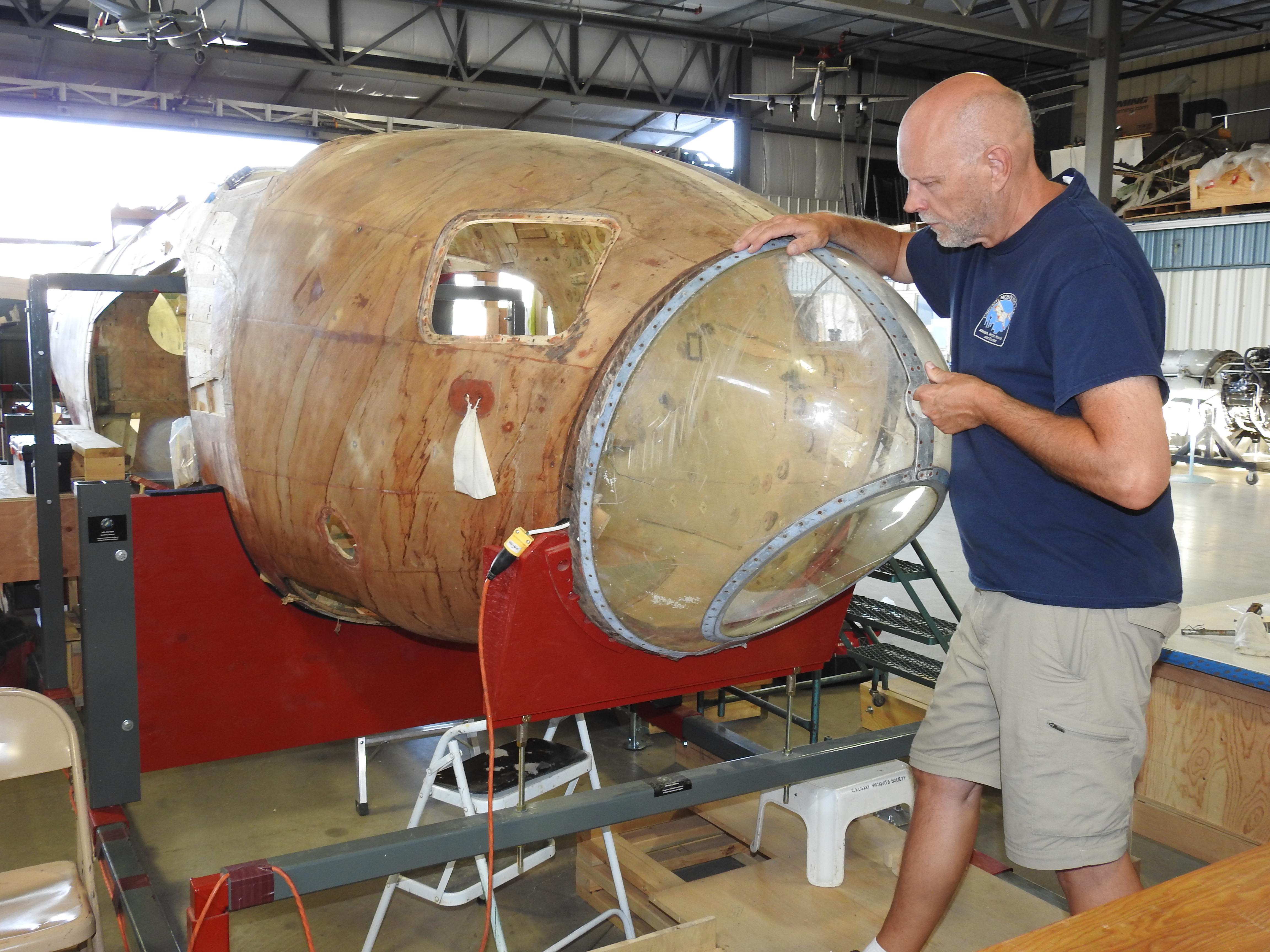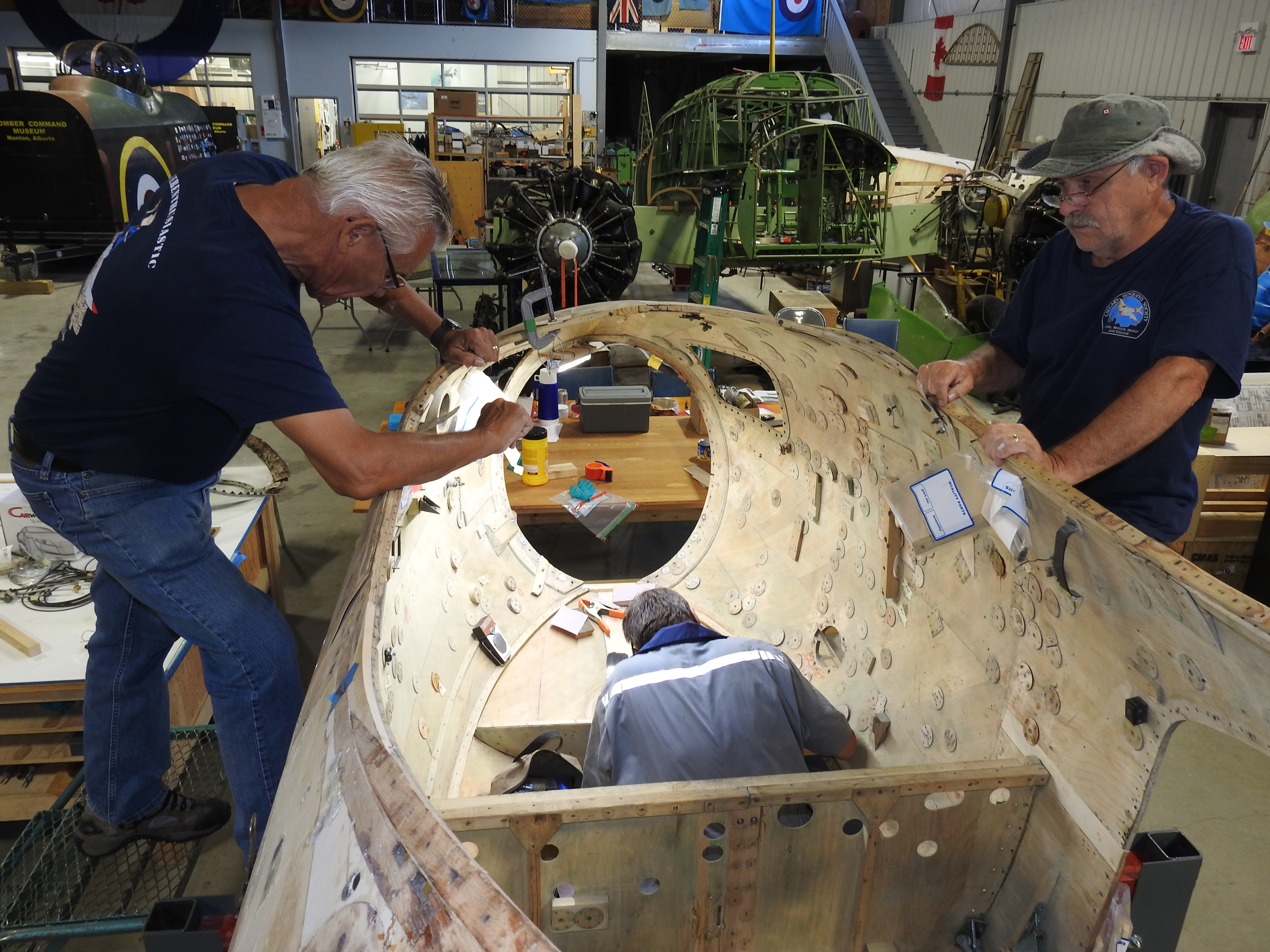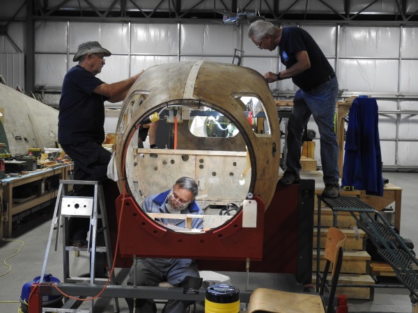 Gary and Dick concentrate on the canopy frame area while Davey continues to work on the crew entry hatch area.