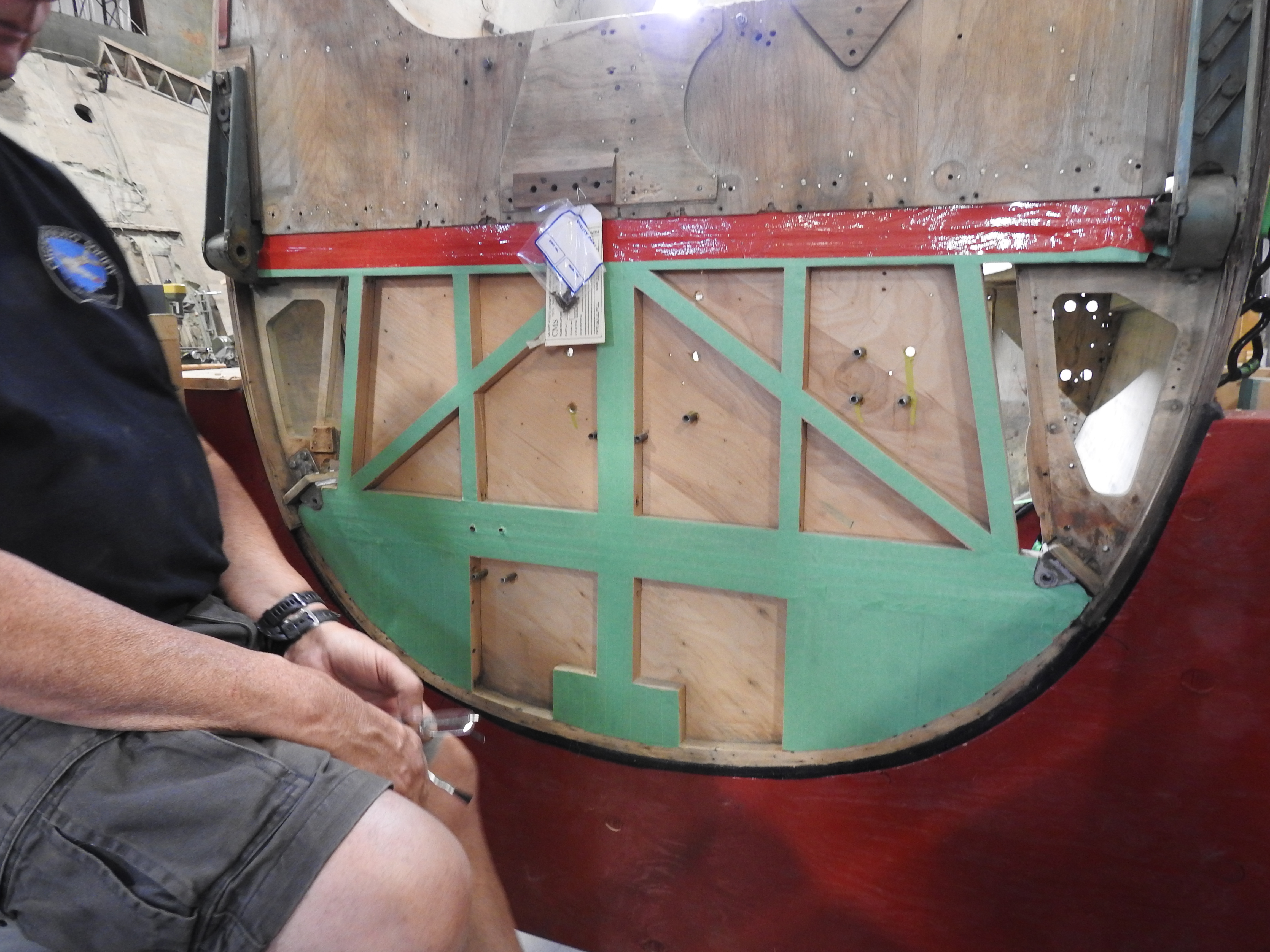 Down the left side of the fuselage all the balsa that was damaged has been replaced. There remains a small section on the right side which will be completed within a week. Andy and Cam have about one days' work left to finish the balsa on the right side so they can move on to other areas.