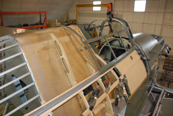 The structural repair work in the cockpit area is slowly coming to completion with small areas being glued following close inspection. The last remaining large job is to complete the tunnel from the main crew entry door to the floor boards.