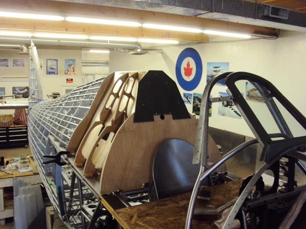 "The armoured windscreen, although manufactured in Canada in 1942, was located in England by our good friend David Coeshall. The door was purchased from Spitfire Spares in the UK after it was spotted on their website by CMS member Ken Pootz. The Perspex panels were acquired for us by Aircraft Restoration Company from Hawker Restorations Ltd. Although requiring significant correction by HASI, the structure of the doghouse was built by volunteers at The Aerospace Museum many years ago. Plans to allow us to finish the doghouse were supplied by our friend Ron Taylor, and very importantly Brian Davis, (both in Ontario and both contacted us because of our Facebook presence) based on work done by Harry Whereatt of Assiniboia, SK. when he was working on a Hurricane in the 1980s. The canopy rails were manufactured for us in Chino, CA by a machine shop located by our VP, Jack McWilliam. Doing the work to bring all of this together is the very talented Greg Davis of Historic Aviation Services with half of the funding provided by City of Calgary with the balance of funding provided by Calgary Mosquito Aircraft Preservation Society and all of it coordinated by us."