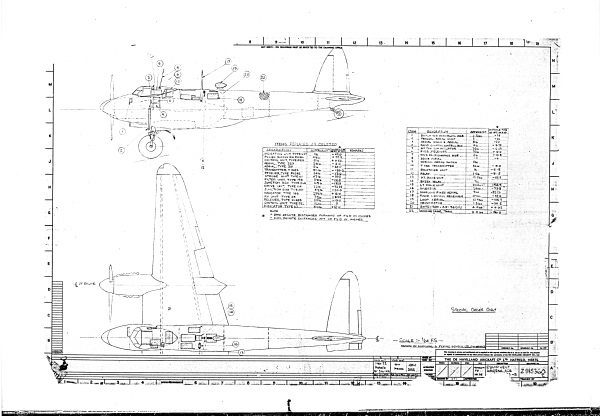 The organization contacted us when they discovered the drawings, developed in 1950 by Marshall's Flying Club of Cambridge, to convert the B.35 Mosquito model into the PR.35 model at the request of the Royal Air Force. Our airplane was the very first to undergo these modifications, thus becoming the prototype PR.35. The chief engineer for The People's Mosquito group took time from his indexing work to copy two sheets and send them to us, making us the first organization to benefit from this historic find.