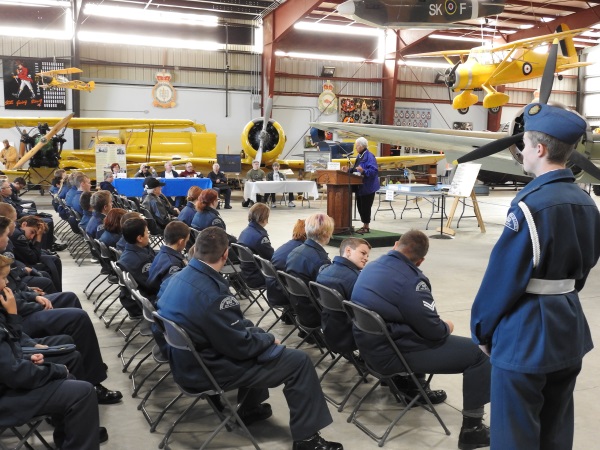 Canadian Aviation Artist held their annual get together in conjunction with the Halifax themed weekend. Right: Senator Anne Cools addresses the audience which included two air cadet squadrons.