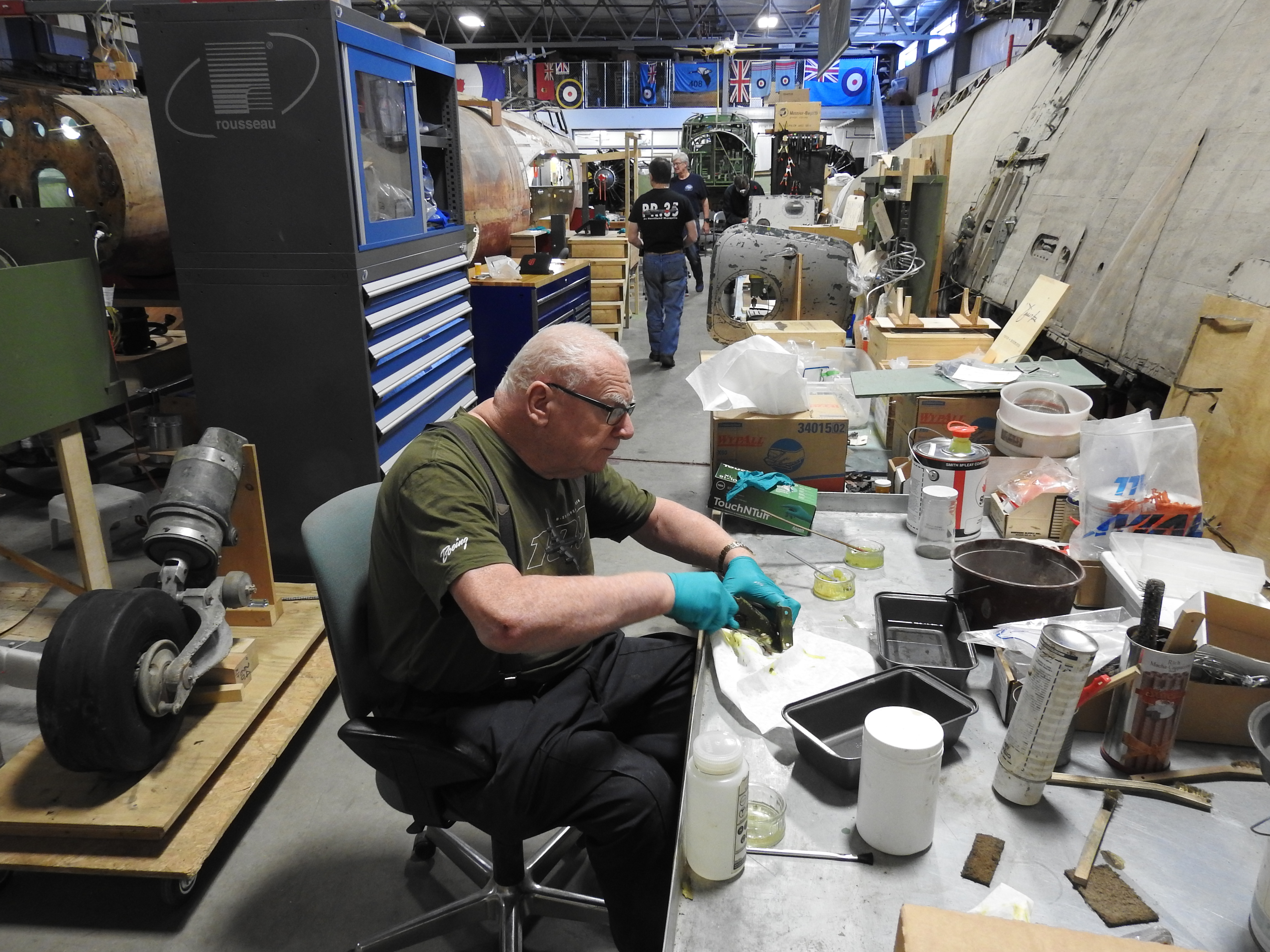 Paul paint stripping Mosquito parts prior to repainting. Paul was a voracious reader who had an incredible memory for where and when he first saw any aircraft type. Paul was well travelled, good natured and a dedicated volunteer.