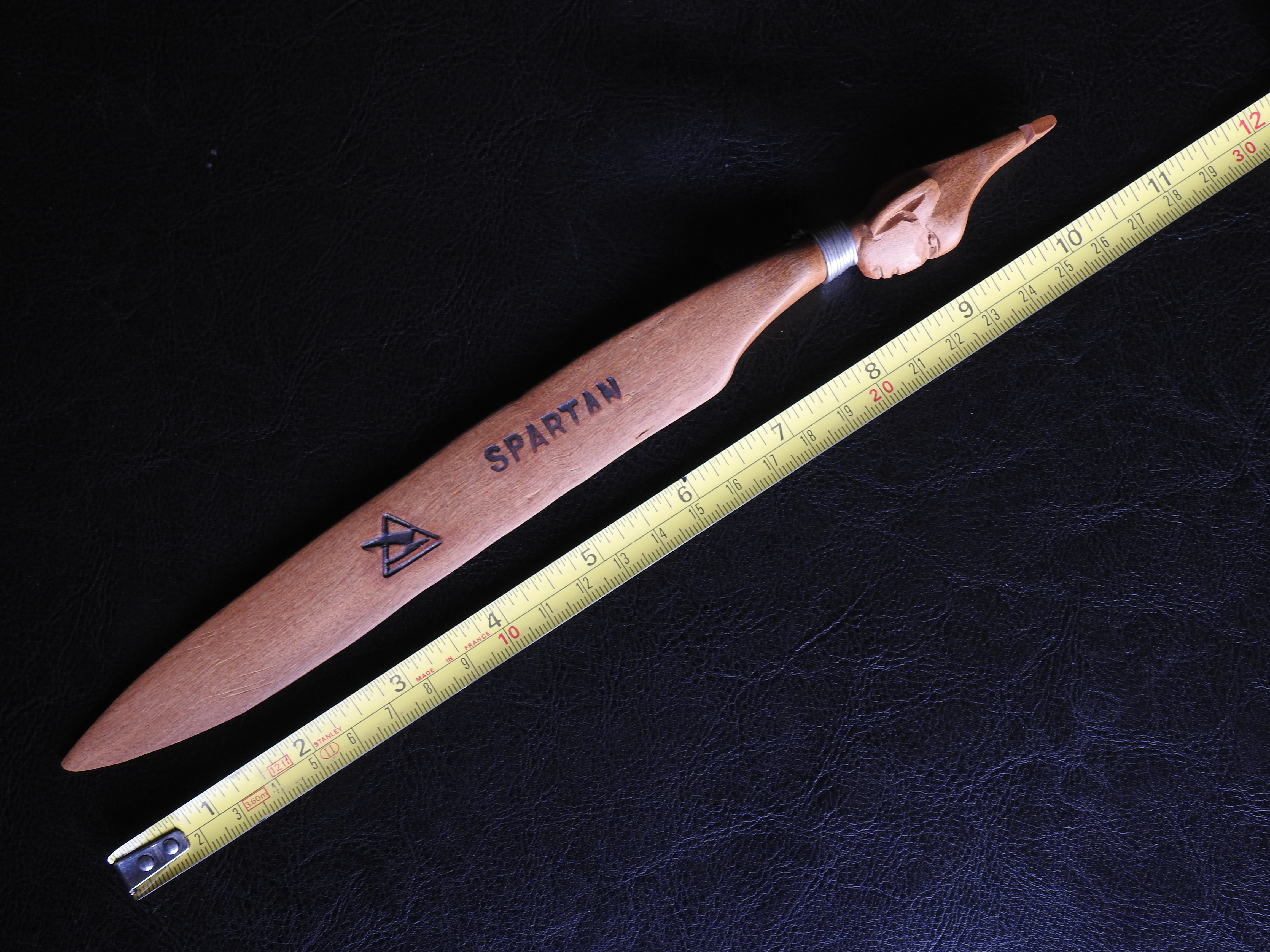 An African style Spartan logoed letter opener and a Calgary Albertan newspaper clipping reporting on the arrival of CF-HMS in Calgary on January 12, 1965.