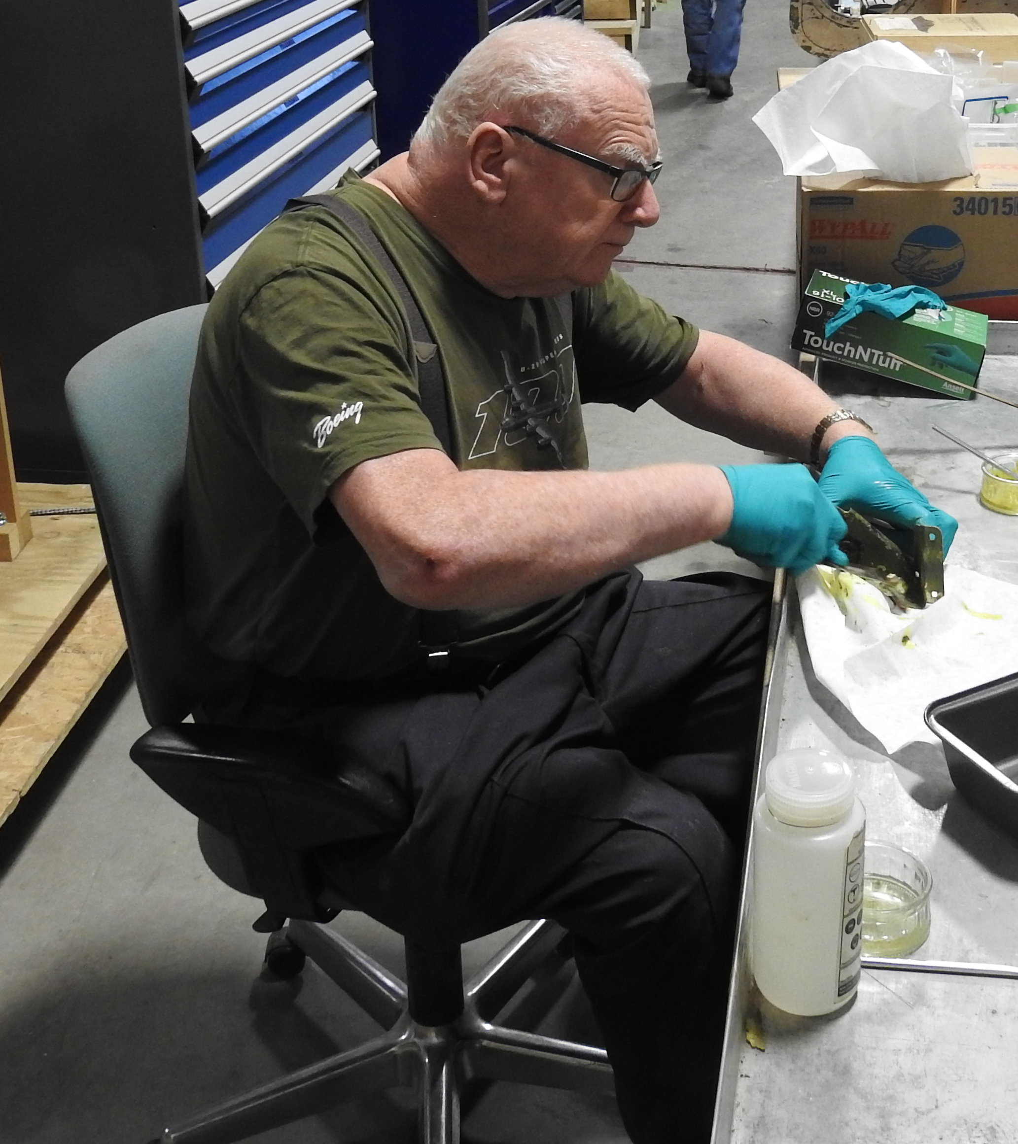 Gary is scarfing the aft area getting ready for the first external patch, after which we will move forward from this point working back to bulkhead 3.