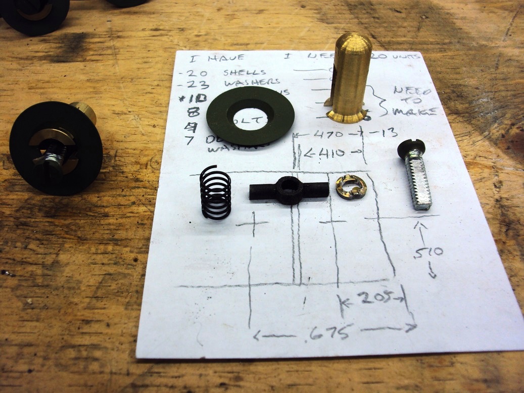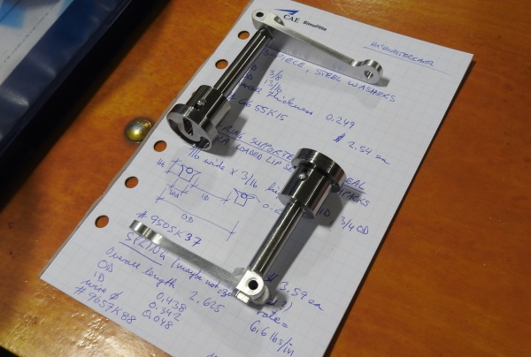 Jack and Dick consult with machinist Rudy J. (center) on some of the parts needed for the Hurricane hydraulic unit. Examples of Rudy's fine work above.
