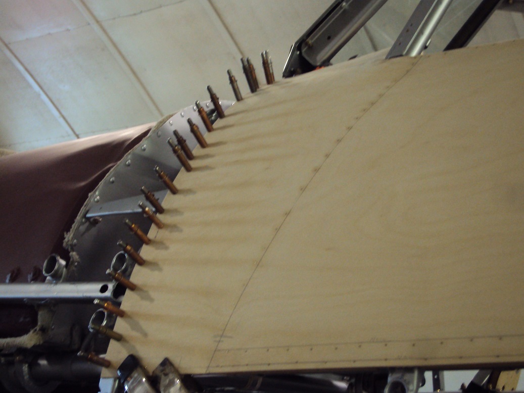 How often do you get to cleco plywood? The port side cockpit exterior where wood meets the metal former.