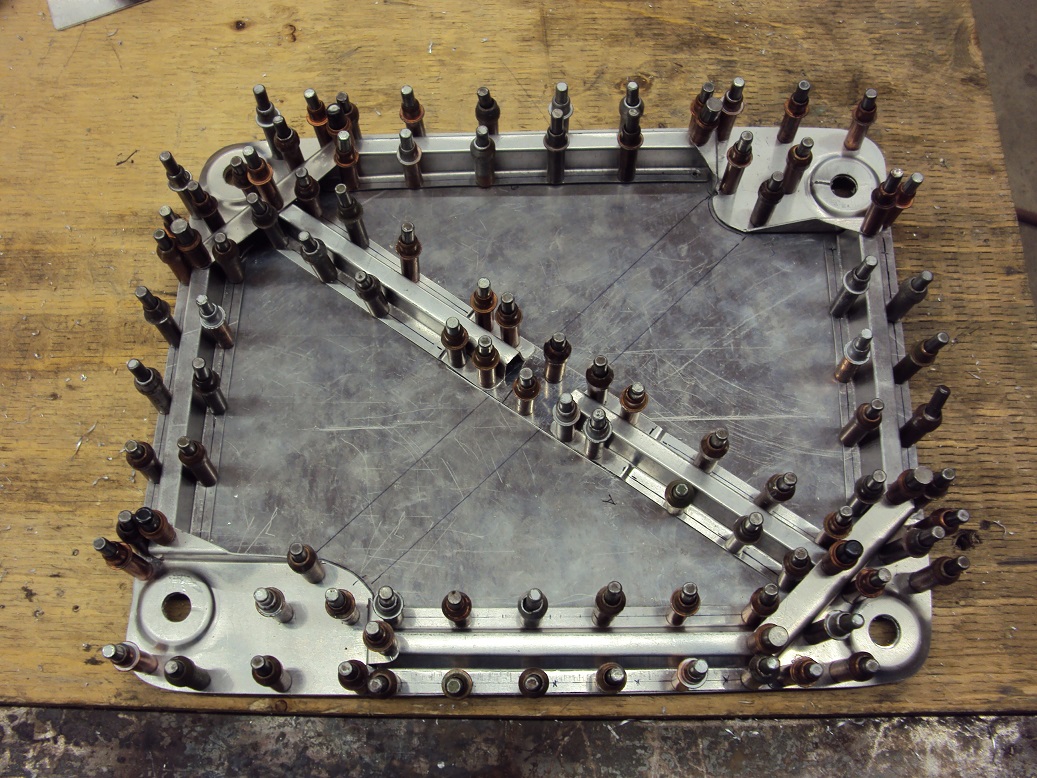 Davey has been hard at work cleaning threads on all the fasteners for the armour plates and reattaching them to the template. Material used to protect the wood and armour from fretting now needs to be sourced and cut for fit.