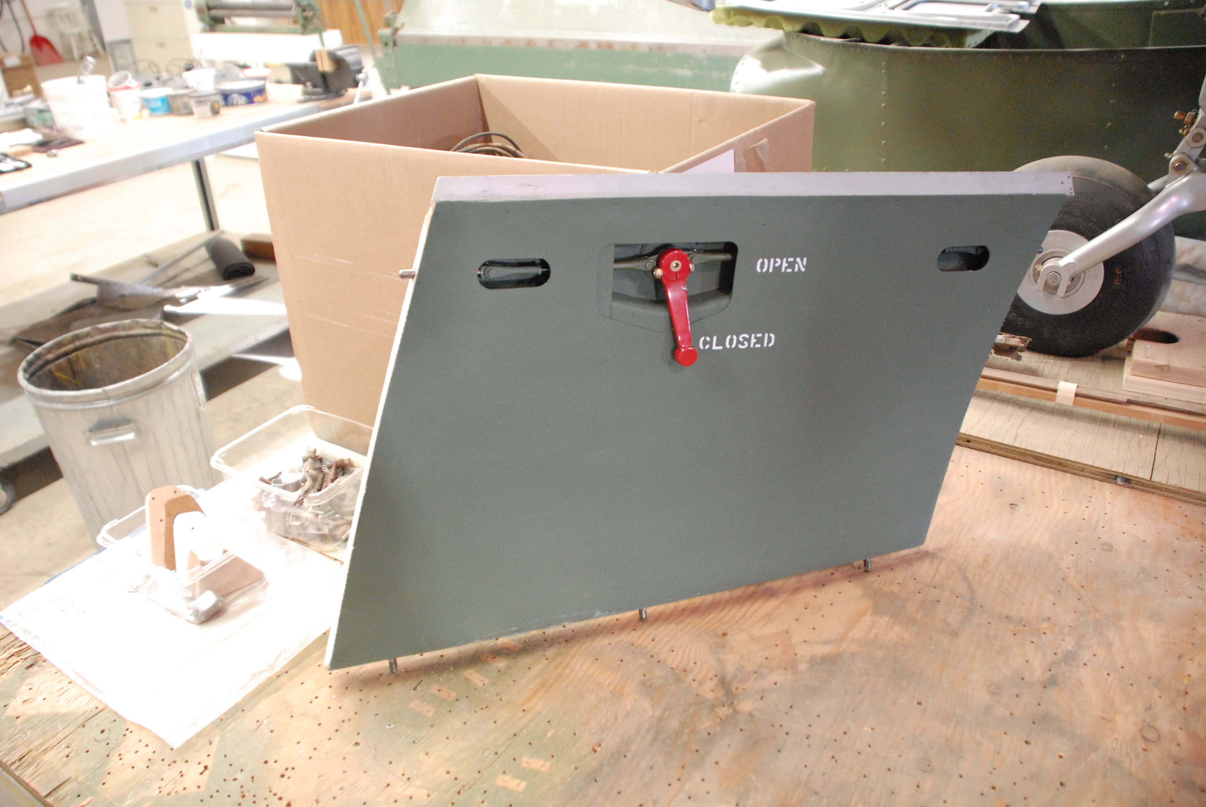 Starboard side cockpit emergency door with newly manufactured handle, pivot assy, drag links, locating pins, plunger lock assemblies and pin receiver plates.