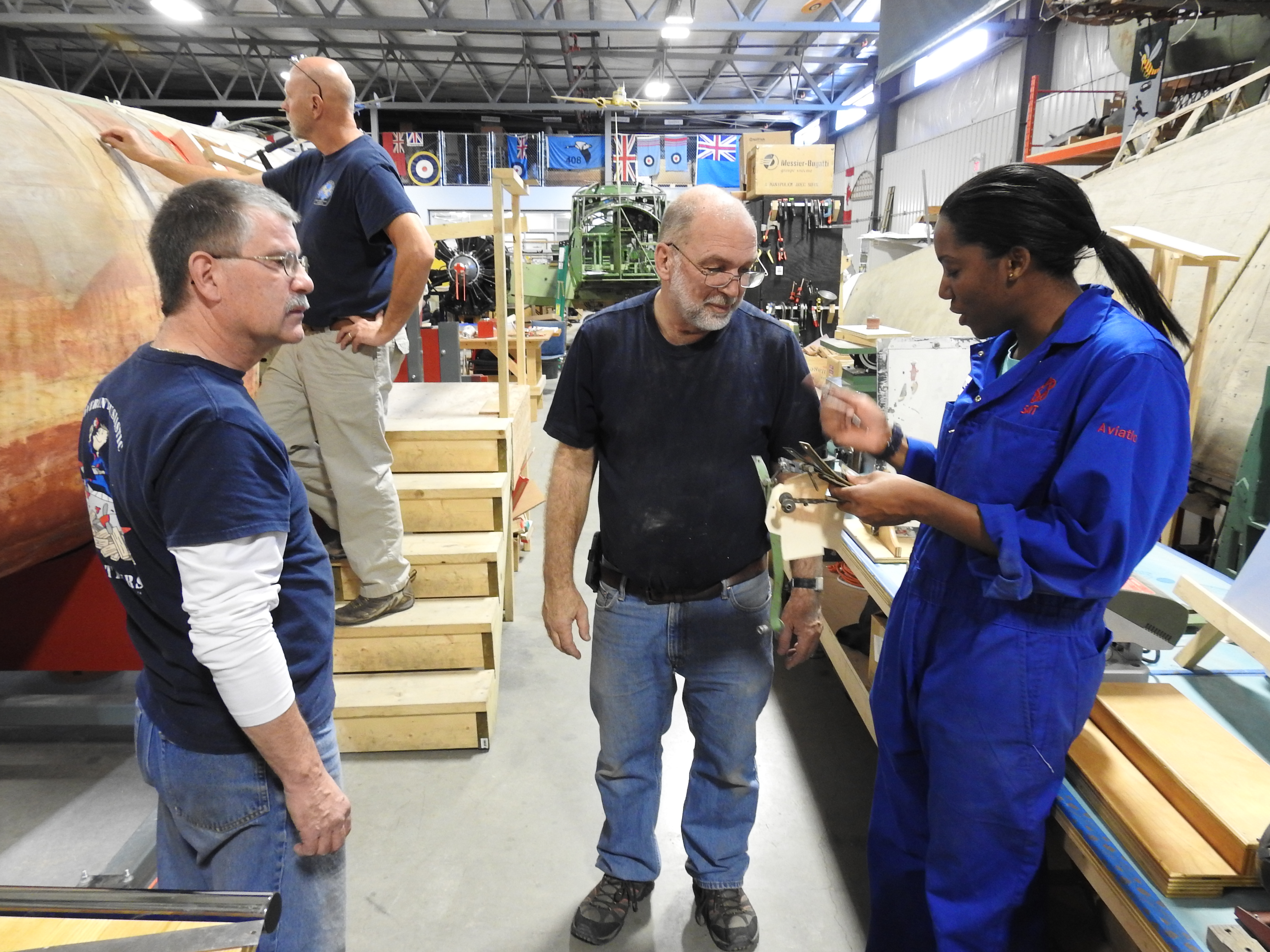Jack McWilliam talks to Dr. Betty Campbell about some of the structural repairs on the Mosquito fuselage. Dr. Campbell is featured in a number of our 'Honour and Educate' videos available on YouTube.