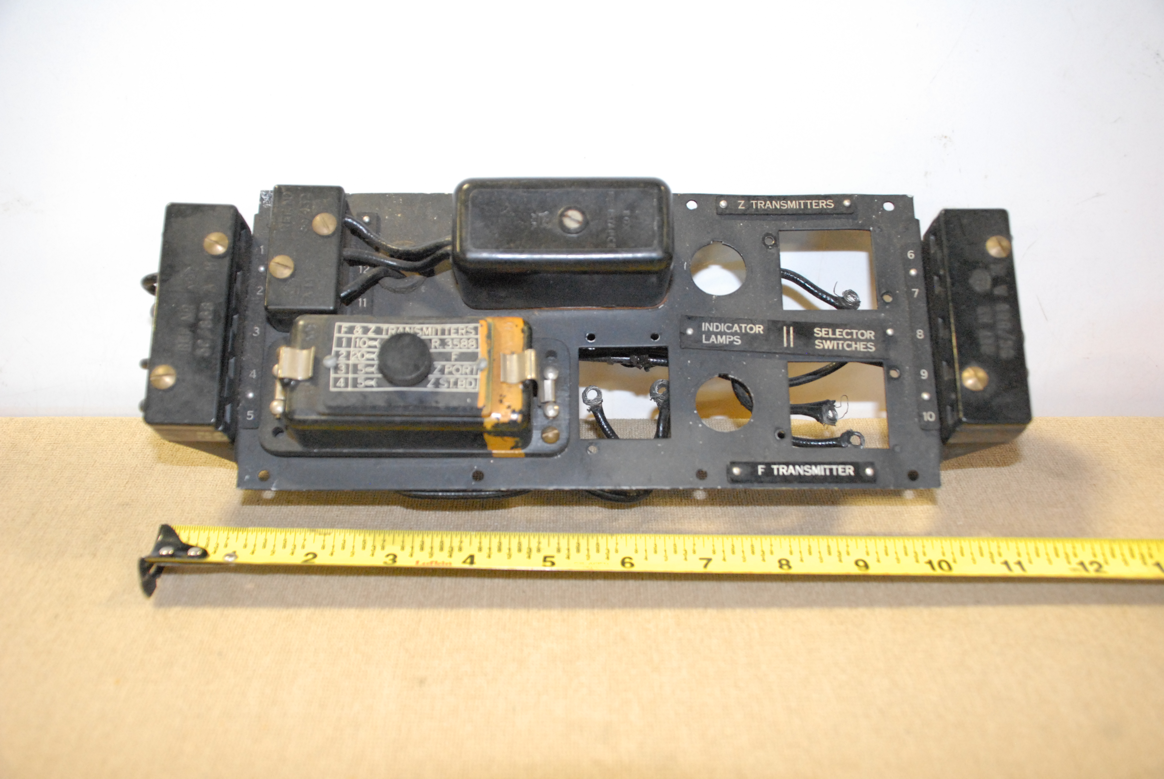 A minor electrical panel and an undercarriage/flap/bomb door hydraulic selector unit which we have added to our collection of potential trade materials. The bomb door selector lever is not present indicating that this particular unit was for the fighter version of the Mosquito.