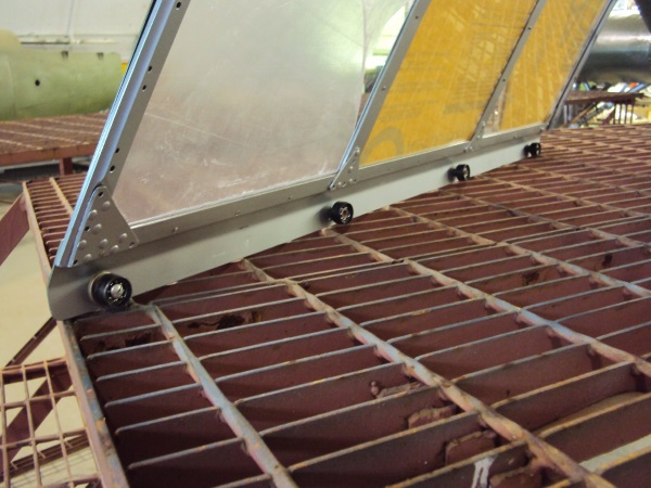 In the cockpit area as well, Andy has taken the time to map the location and keep track of all the grounding straps and he has temporarily installed small nails in each nail hole so the original locations and paths can be followed. Once the painting is completed we will start restoring the grounding straps which are badly wrinkled and cracked.