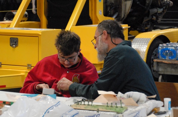 VP Jack McWilliam in the role of mentor, teacher and sage to SAIT Aircraft Structures student Janelle F. who has become a regular volunteer seeking to up her skill levels.