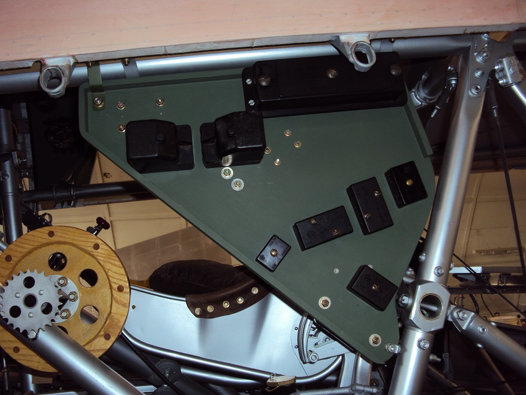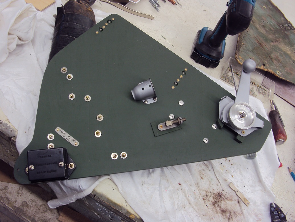 BEFORE: The port side cockpit electrical and fuse panel with landing/taxi light lever.