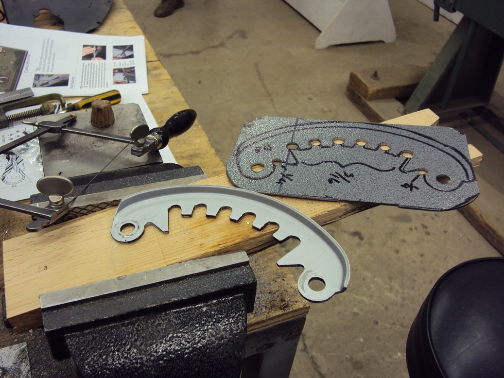 Manufacturing the pilot's seat height adjuster. Much of the original had disappeared over time. Using one side as a pattern to make its mirror image.