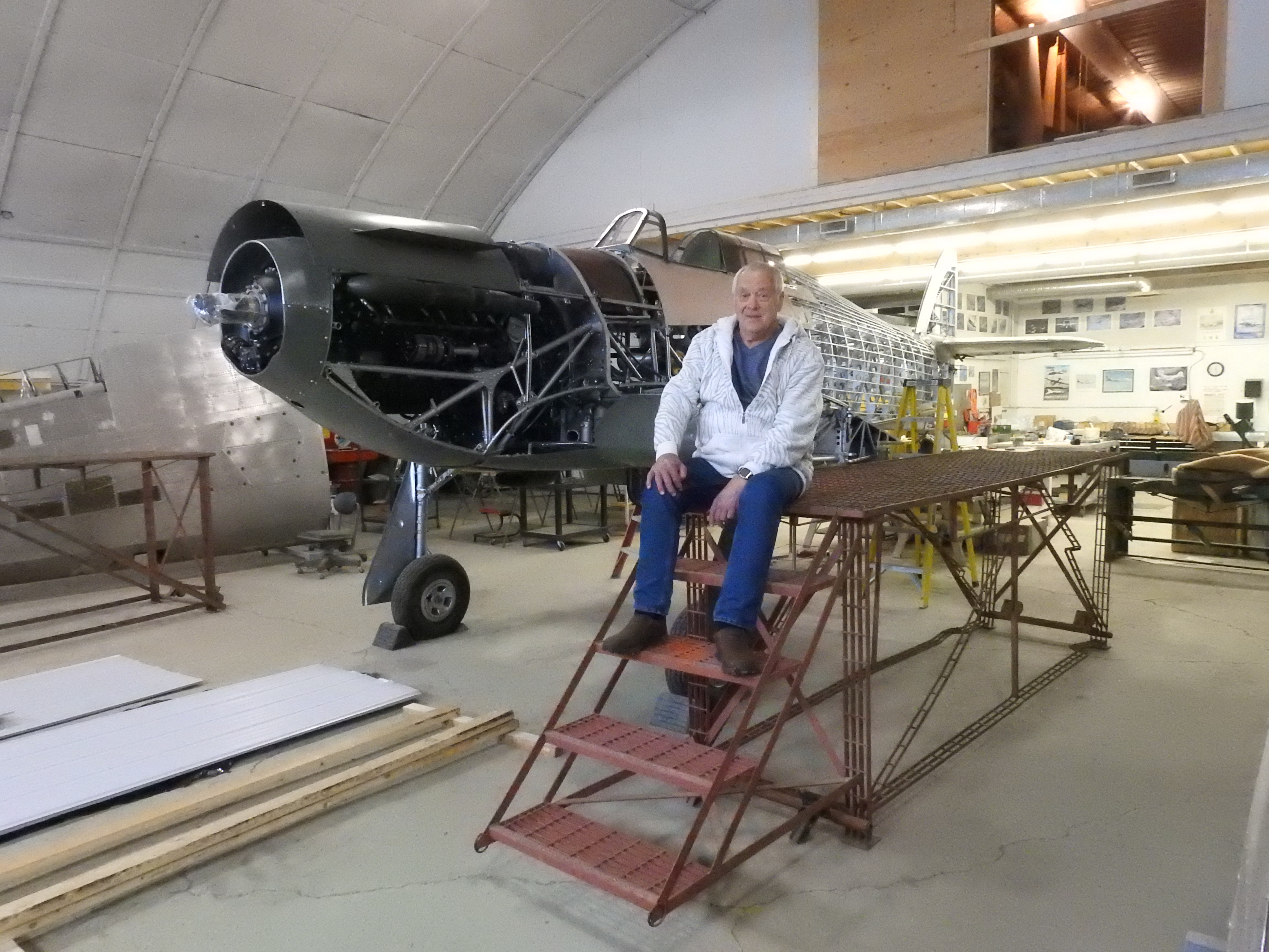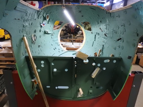 Davey D. working on the bulkhead prior to reinstalling the armour plate which protected the crew’s lower legs and provided significant structural strength to the fuselage.