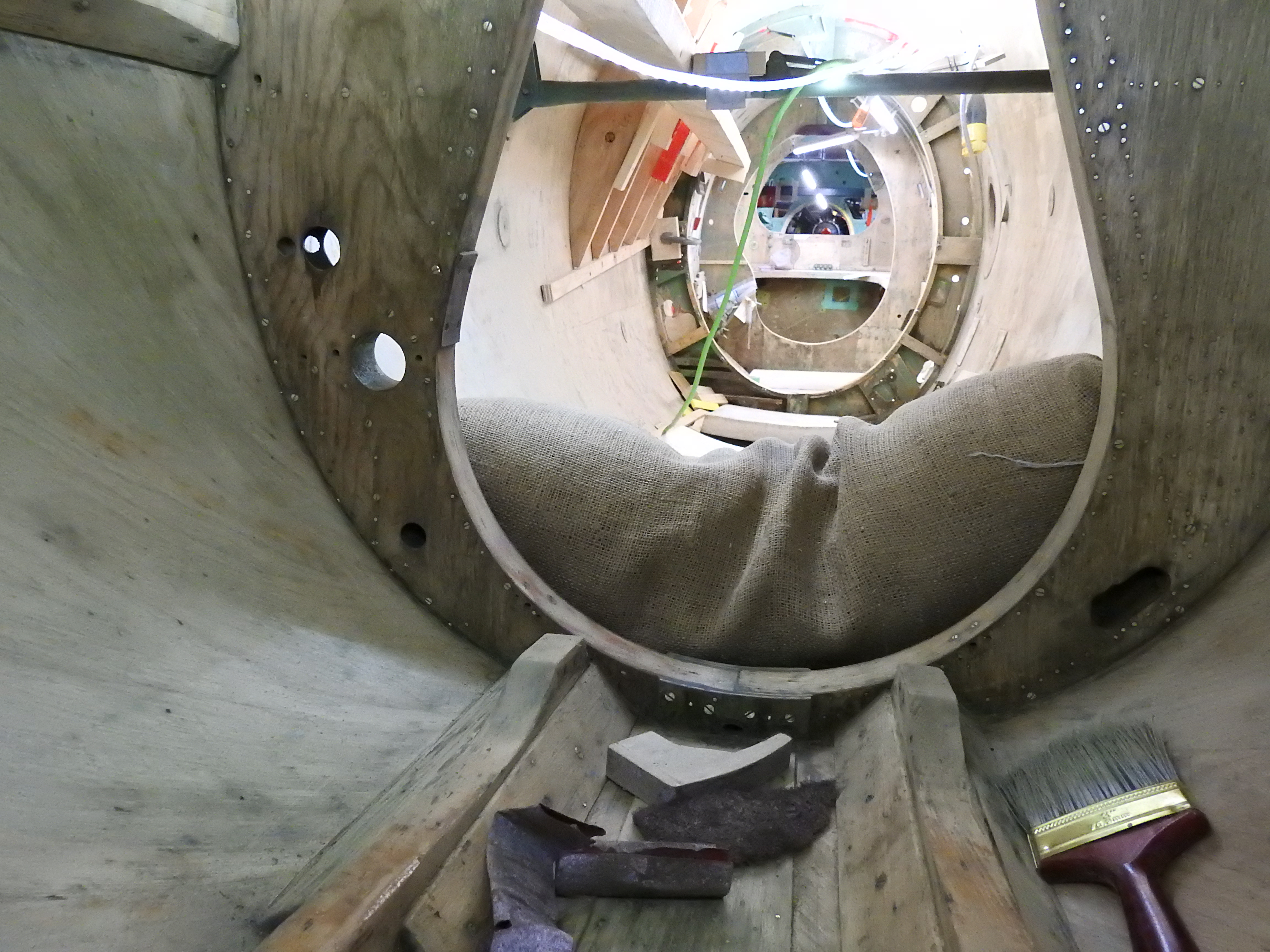 We continue to experiment with and learn about vacuum bagging to facilitate installing the exterior skins, with a few challenges yet to be resolved. Equipment should be in place to move forward with this by the end of the week.