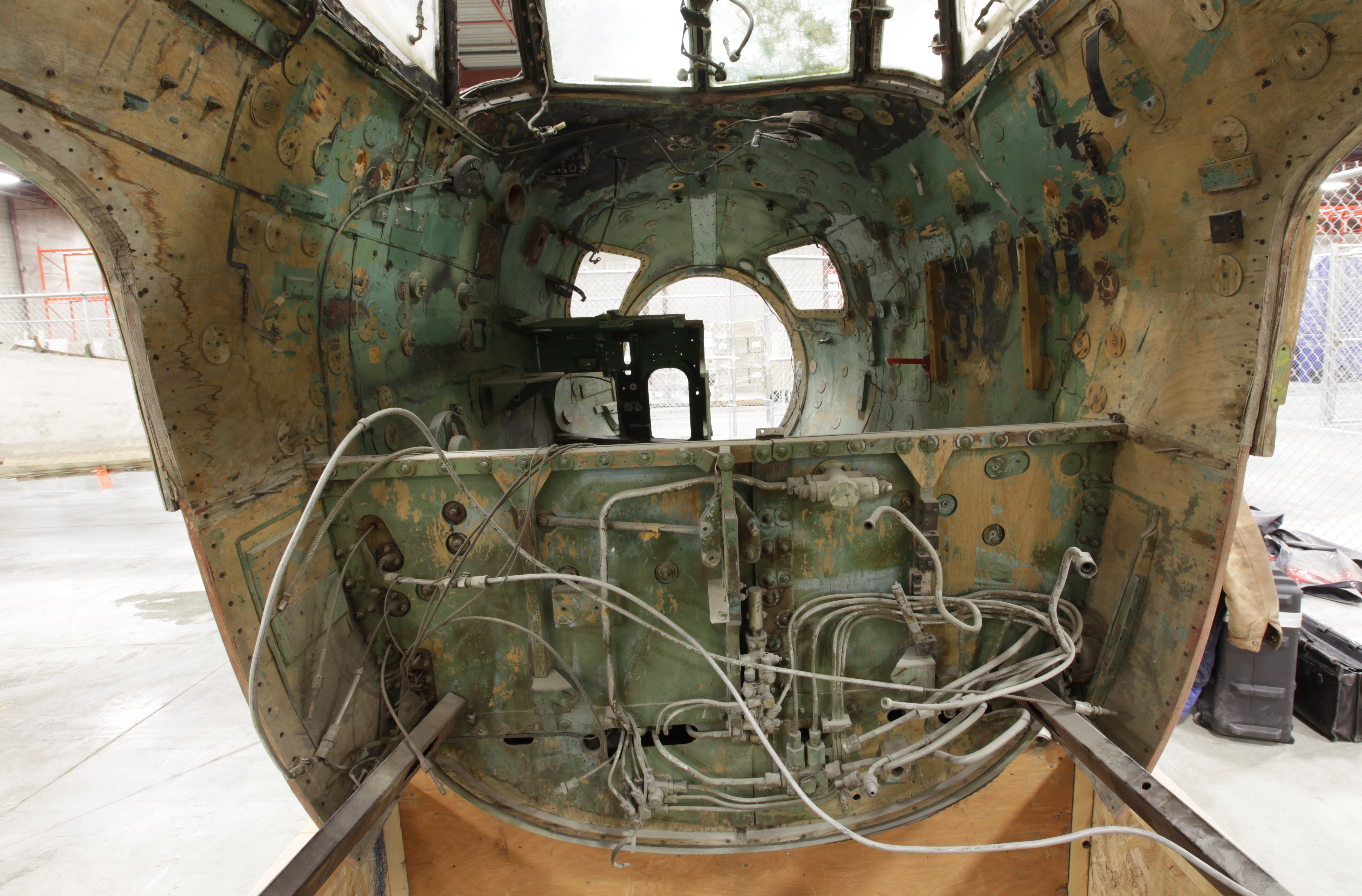 Then and Now: 2012 and 2018. Standing in the bomb bay looking forward into the cockpit and nose area.