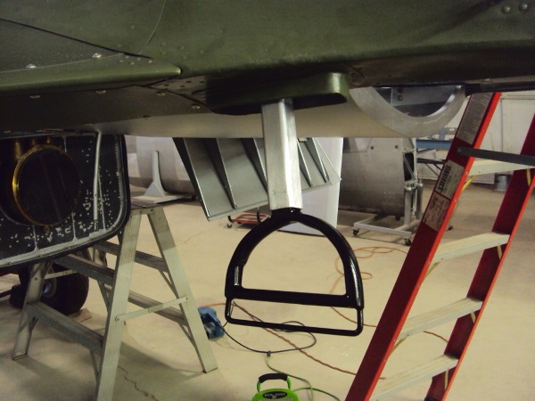 The iconic retractable 'stirrup' for the pilot to get from the ground to the trailing edge of the port wing. The stirrup and much of the complex retraction mechanism was missing and had to be manufactured.
