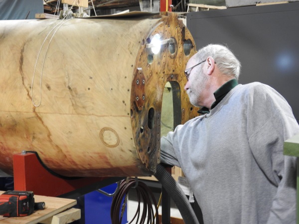 The structure around the aft lower wing attach points has been opened, with a great deal of old glue removed were possible with the joints being re-glued. Wooden plugs were made to fill holes cut in the camera operator's shelf in order to gain access to the hardware that bolted the structure together. New hardware will be sourced and installed as corrosion in this area was extensive.