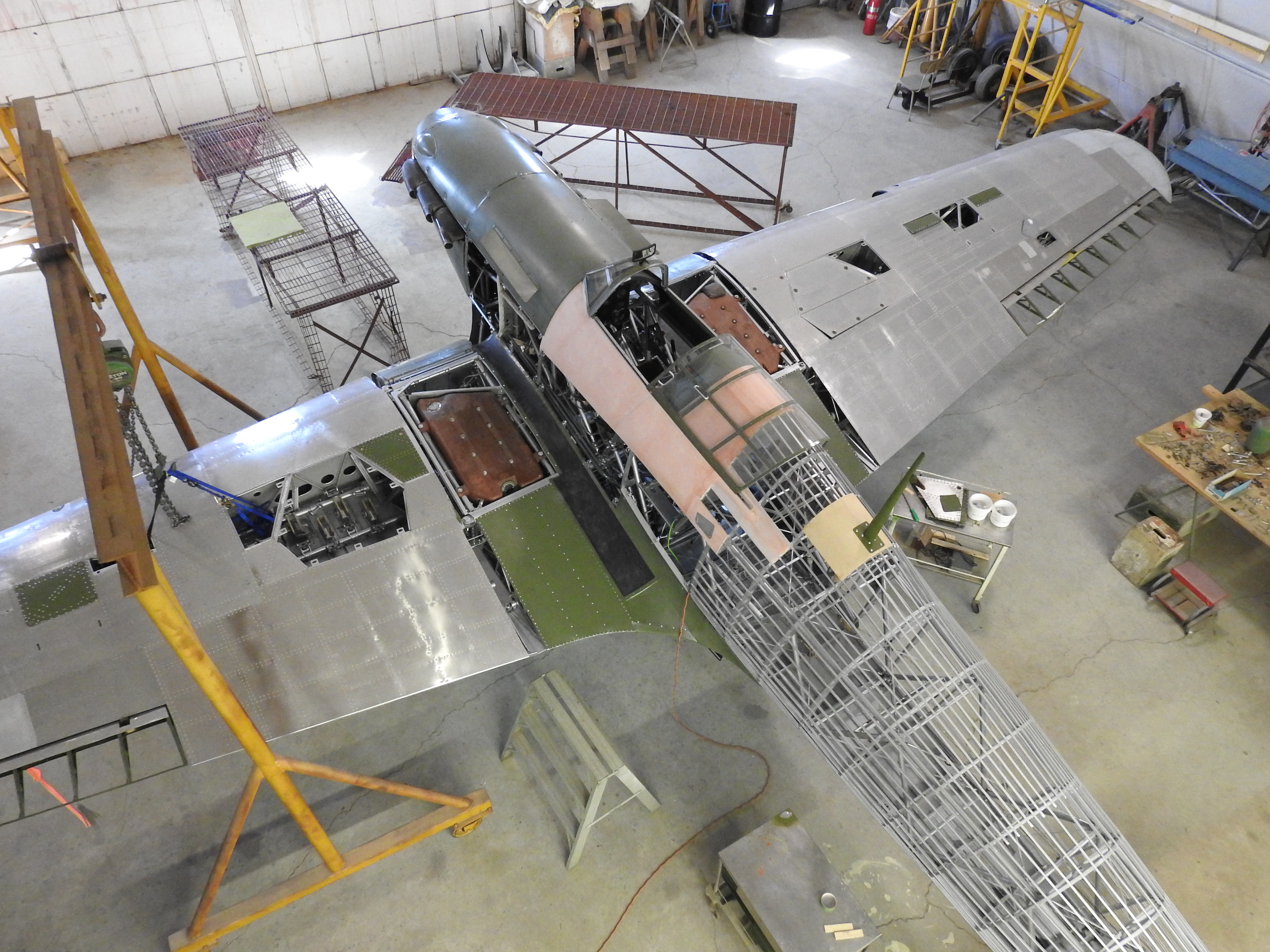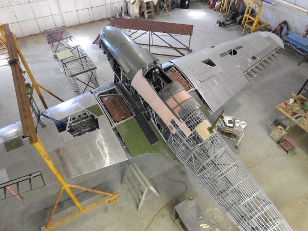 Not only is she sporting her wings for the first time in 72 years, but the center section fuel tanks are installed, the antenna mast is secured and the cowlings are now properly fitted.