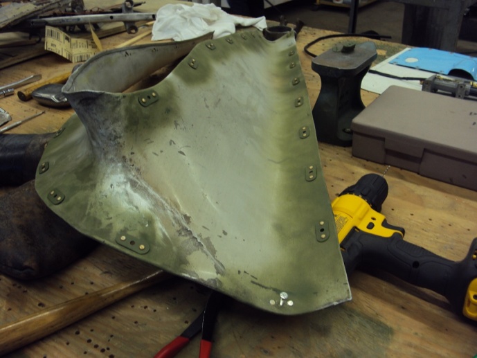 Starting to fit the fairings; all of which require extensive English Wheel and beanbag and hammer work.