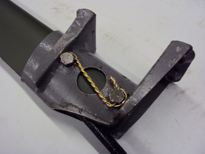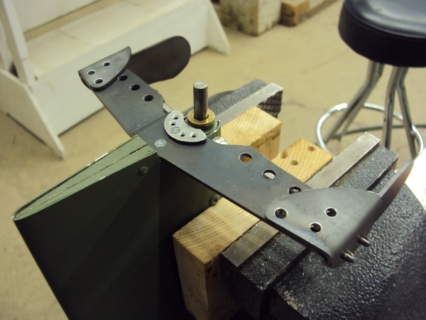 Mounting the unit on the rudder trim tab. Now drilled, reinforced, with a pivot point.