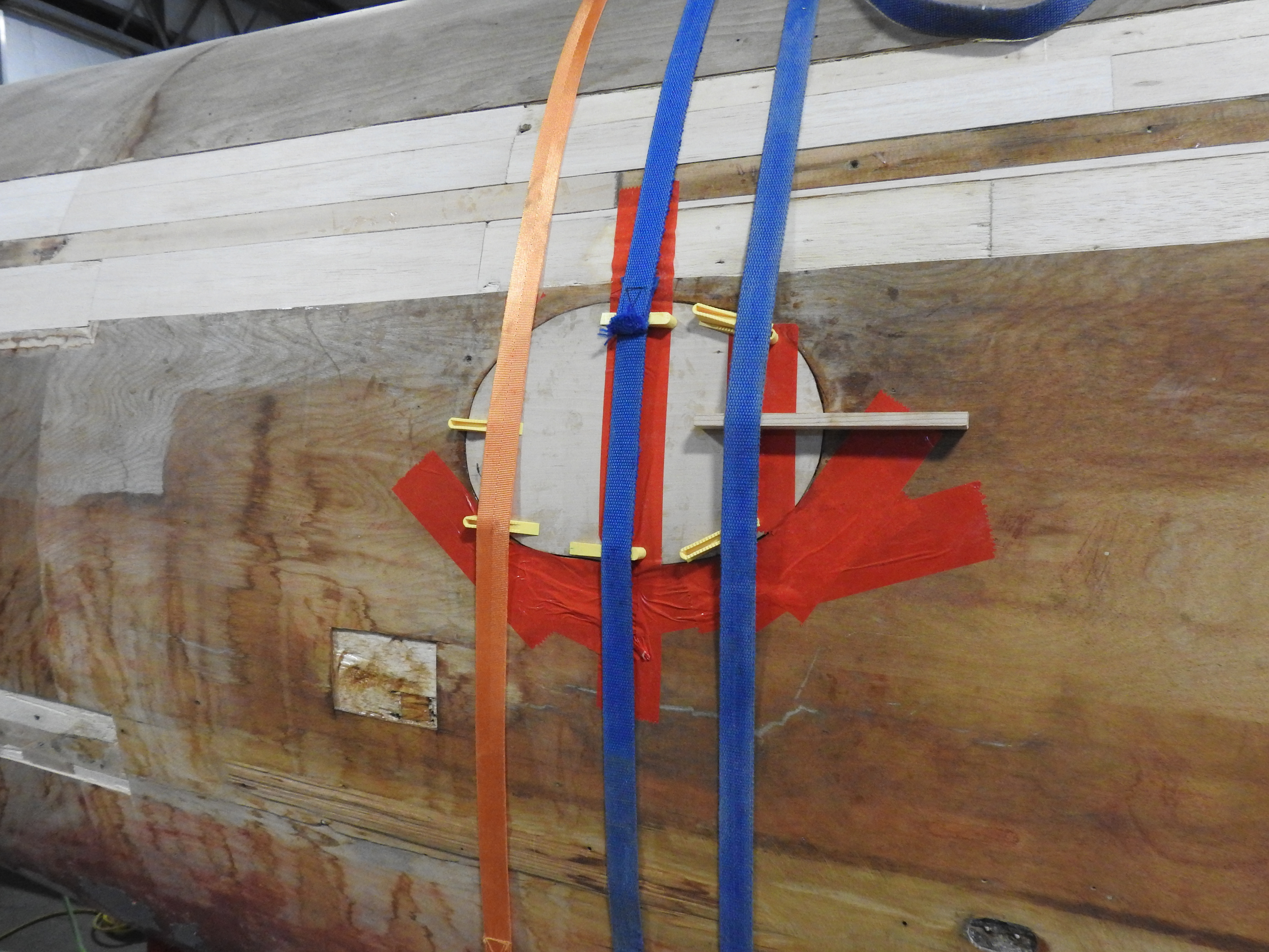 One of the things that has worked well is that we have gone to a very thin epoxy that can be sucked into the wood using a vacuum pump. This also helped to fill the nail holes needed to reattach the copper strips. At times it has worked so well that we find epoxy entering the hose to the pump. Picking up on an existing nail hole with a suction cup to apply the vacuum, a syringe is used to inject the thin epoxy an inch or so away. We have also used the syringe to inject epoxy in areas where the pump is not appropriate. As stated before, we know there are issues with bonding between the balsa and skins both inner and outer.