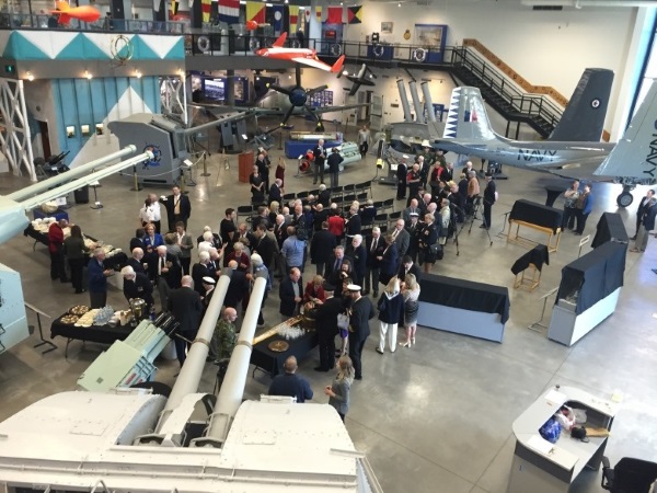 Visitors begin to gather at the Military Museums for the April 18 presentation on the History of Hurricane 5389. It proved to be a popular topic with the museum moving us from their theater to the larger open space and then running out of chairs.